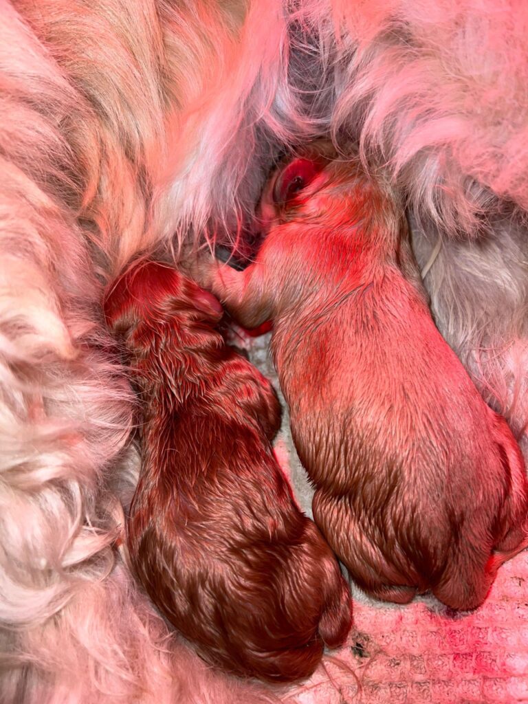 Zo’n 4 weken na de dekking kun je bij de dierenarts een echo laten maken. De dierenarts ziet of er pupjes in de buik zitten en kan een redelijke inschatting maken hoeveel pups, maar hij/zij kan er ook nog wel eens een beetje naast zitten. Een echo is niet noodzakelijk want eigenlijk merk je al aan je teefje dat er veranderingen zijn, zoals moe, misselijkheid, dikker of verandering aan de tepels. Maar na het maken van een echo heb je wel zekerheid. Rond 7 weken kun je eventueel een röntgenfoto maken om te kijken hoeveel pups er komen.